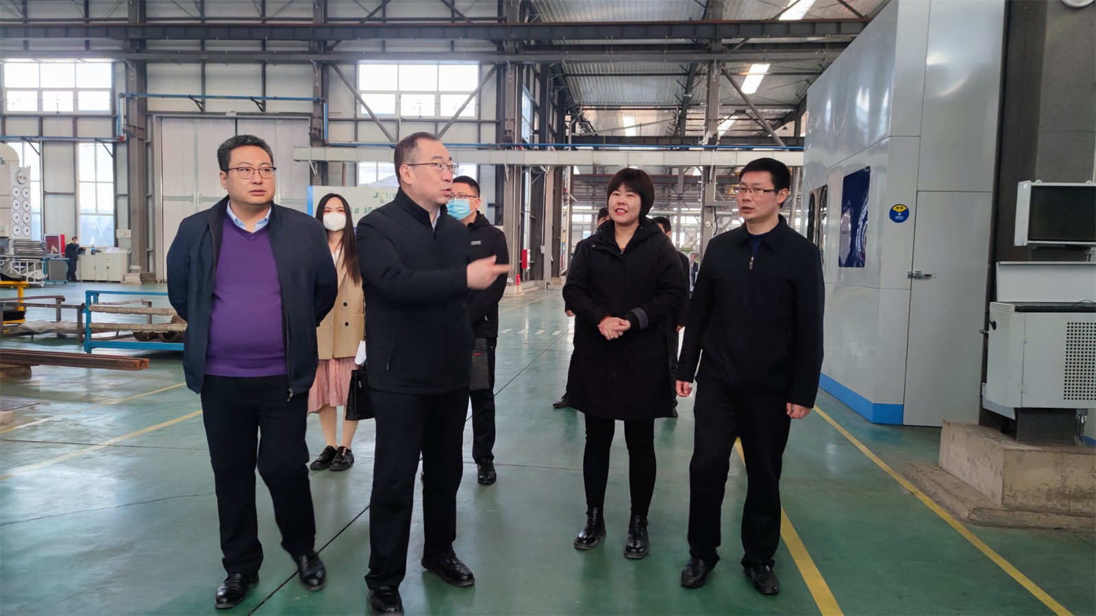 尹處長一行來到工廠廠房,參觀了生產(chǎn)現(xiàn)場(chǎng),詳細(xì)詢問了項(xiàng)目投產(chǎn)情況。高總經(jīng)理向尹處長匯報(bào)了聚力特工業(yè)設(shè)備智能制造產(chǎn)業(yè)化項(xiàng)目的建設(shè)進(jìn)程、生產(chǎn)能力和發(fā)展前景,并對(duì)各級(jí)政府在疫情期間全力保障企業(yè)的生產(chǎn)生活表示了衷心的感謝。